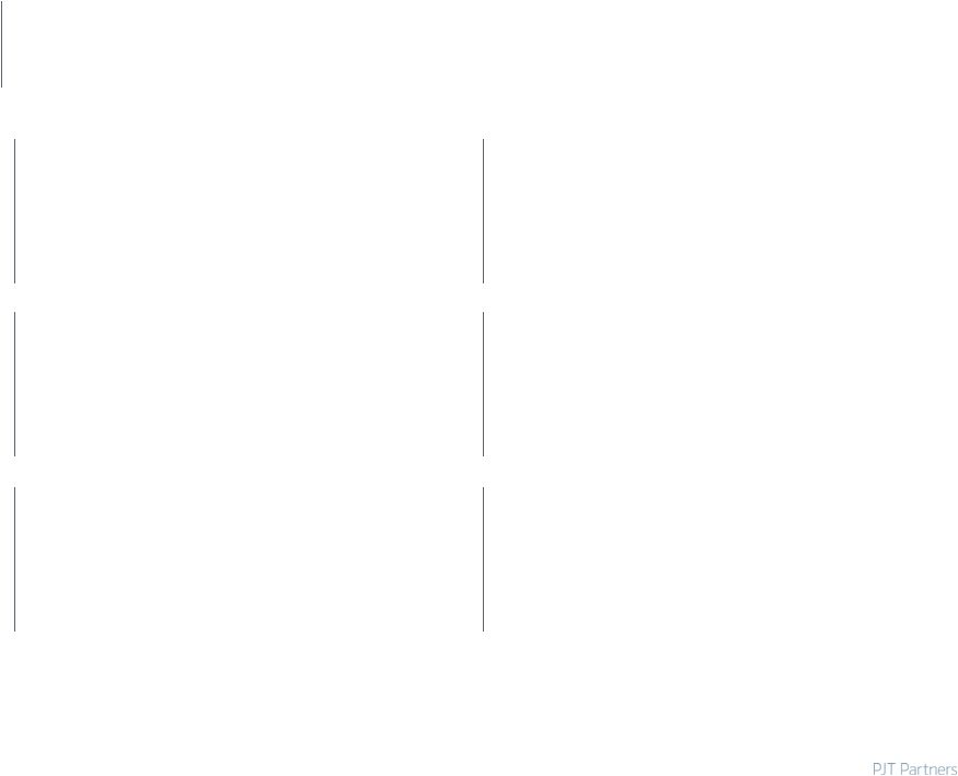 Our actual results in future periods may differ materially from those currently expected because of a number of risks and uncertainties. The risks and uncertainties that we believe are material are described in the Risk Factors section of the Information Statement that is an exhibit to PJT Partners Registration Statement on Form 10, which was filed with the Securities and Exchange Commission dated September 2, 2015, SEC File No. 001-36869. Please consult these documents for a more complete understanding of these risks and uncertainties. We disclaim any intention or obligation to update or revise any forward-looking statements, whether as a result of new information, future events or otherwise, except as may be required by law. Our outlook is provided for the purpose of providing information about our current expectations for 2015 and the general outlook for the business in the longer term. This information may not be appropriate for other purposes. This presentation contains certain non-GAAP financial measures. A non-GAAP financial measure is defined as a numerical measure of a companys financial performance that excludes or includes amounts so as to be different than the most directly comparable measure calculated and presented in accordance with generally accepted accounting principles in the United States of America (GAAP) in the statements of operations, financial condition or statements of cash flow of the company. The Company has provided a reconciliation of Adjusted Pre-Tax Income, a non-GAAP financial measure, to GAAP Income (Loss) Before Provision for Taxes in the Appendix to this presentation. Adjusted Pre-Tax Income is presented because management believes that such a financial measure, when viewed with the Companys results of operations in accordance with GAAP and the reconciliation of Adjusted Pre-Tax Income to Income (Loss) Before Provision for Taxes, provides additional information to investors about certain transaction-related charges arising from the spin-off related transactions. You should not consider Adjusted Pre-Tax Income in isolation, or as a substitute for analysis of results as reported under GAAP. Our calculation of Adjusted Pre-Tax Income may not be comparable to that reported by other companies. For additional information about our non-GAAP financial measures, see our filings with the Securities and Exchange Commission. This document is as is and is based, in part, on information obtained from other sources. Our use of such information does not imply that we have independently verified or necessarily agree with any of such information, and we have assumed and relied upon the accuracy and completeness of such information for purposes of this document. Neither we nor any of our affiliates or agents, make any representation or warranty, express or implied, in relation to the accuracy or completeness of the information contained in this document or any oral information provided in connection herewith, or any data it generates and expressly disclaim any and all liability (whether direct or indirect, in contract, tort or otherwise) in relation to any of such information or any errors or omissions therein. Any views or terms contained herein are preliminary, and are based on financial, economic, market and other conditions prevailing as of the date of this document and are subject to change. We undertake no obligations or responsibility to update any of the information contained in this document. Past performance does not guarantee or predict future performance. This document does not constitute an offer to sell or the solicitation of an offer to buy any security, nor does it constitute an offer or commitment to lend, syndicate or arrange a financing, underwrite or purchase or act as an agent or advisor or in any other capacity with respect to any transaction, or commit capital, or to participate in any trading strategies, and does not constitute legal, regulatory, accounting or tax advice to the recipient. This document does not constitute and should not be considered as any form of financial opinion or recommendation by us or any of our affiliates. This document is not a research report nor should it be construed as such. This document may include information from the S&P Capital IQ Platform Service. Such information is subject to the following: Copyright © 2015, S&P Capital IQ (and its affiliates, as applicable). This may contain information obtained from third parties, including ratings from credit ratings agencies such as Standard & Poors. Reproduction and distribution of third party content in any form is prohibited except with the prior written permission of the related third party. Third party content providers do not guarantee the accuracy, completeness, timeliness or availability of any information, including ratings, and are not responsible for any errors or omissions (negligent or otherwise), regardless of the cause, or for the results obtained from the use of such content. THIRD PARTY CONTENT PROVIDERS GIVE NO EXPRESS OR IMPLIED WARRANTIES, INCLUDING, BUT NOT LIMITED TO, ANY WARRANTIES OF MERCHANTABILITY OR FITNESS FOR A PARTICULAR PURPOSE OR USE. THIRD PARTY CONTENT PROVIDERS SHALL NOT BE LIABLE FOR ANY DIRECT, INDIRECT, INCIDENTAL, EXEMPLARY, COMPENSATORY, PUNITIVE, SPECIAL OR CONSEQUENTIAL DAMAGES, COSTS, EXPENSES, LEGAL FEES, OR LOSSES (INCLUDING LOST INCOME OR PROFITS AND OPPORTUNITY COSTS OR LOSSES CAUSED BY NEGLIGENCE) IN CONNECTION WITH ANY USE OF THEIR CONTENT, INCLUDING RATINGS. Credit ratings are statements of opinions and are not statements of fact or recommendations to purchase, hold or sell securities. They do not address the suitability of securities or the suitability of securities for investment purposes, and should not be relied on as investment advice. All facts, metrics and other information provided herein are presented as of 9/11/15 unless otherwise stated. Presentation of Information Non-GAAP Financial Measures Forward-Looking St